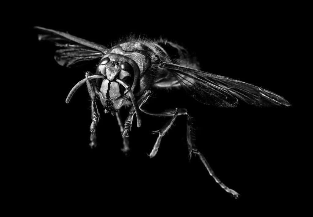 Unlike the more commonly seen yellow & black wasp, the colouration of hornets is black and white. Hornets are also twice the size of wasps and pack a larger wallop when they sting.